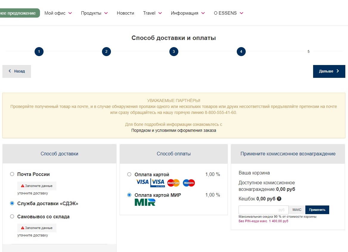 Оплата заказа ESSENS